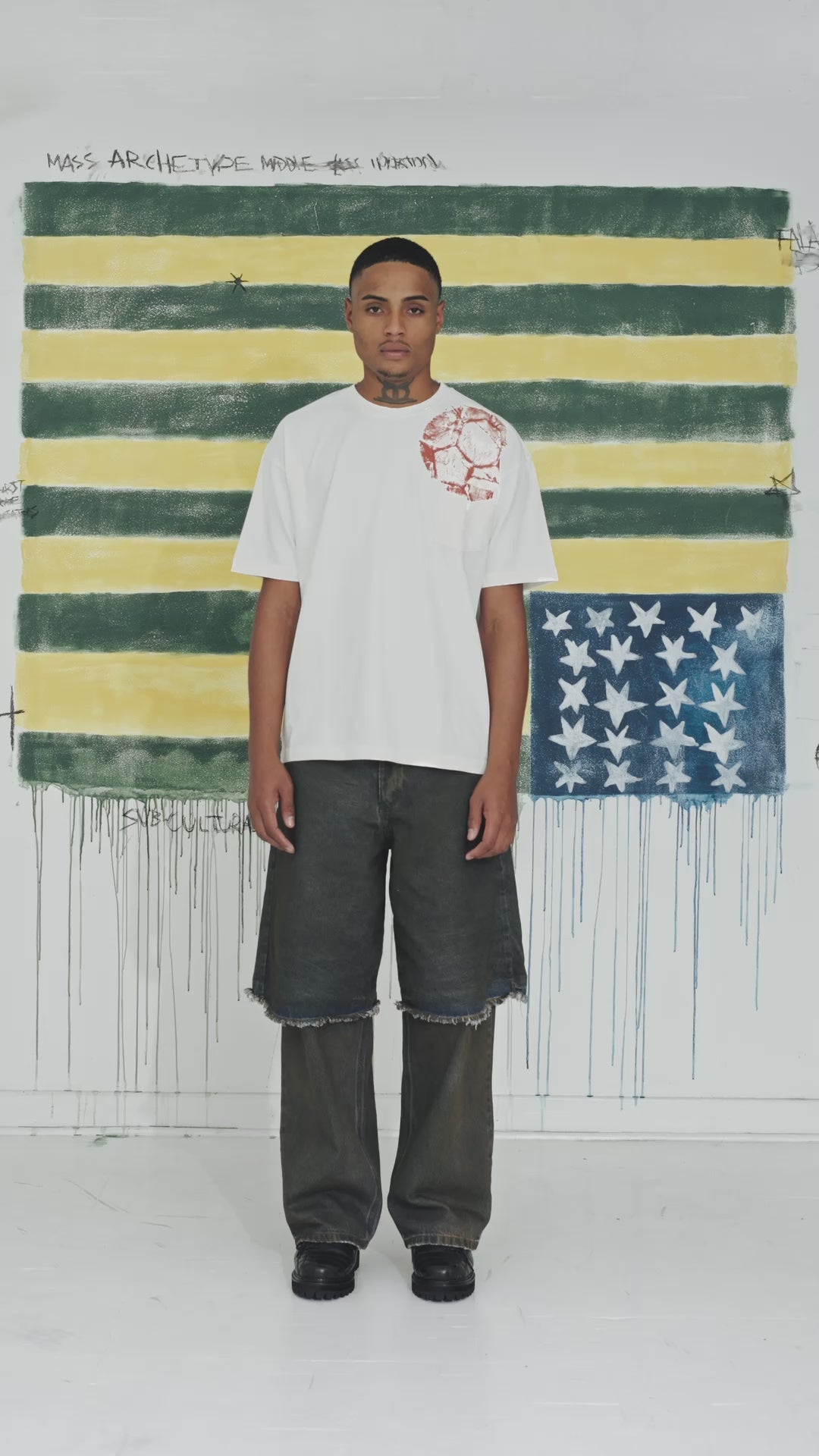 A Football Pocket T-shirt é confeccionada em malha 100% algodão de 270 GSM pré encolhida. Sua modelagem relaxed oferece um caimento mais oversized, com caída de ombro nas mangas e gola de 2,5 cm.