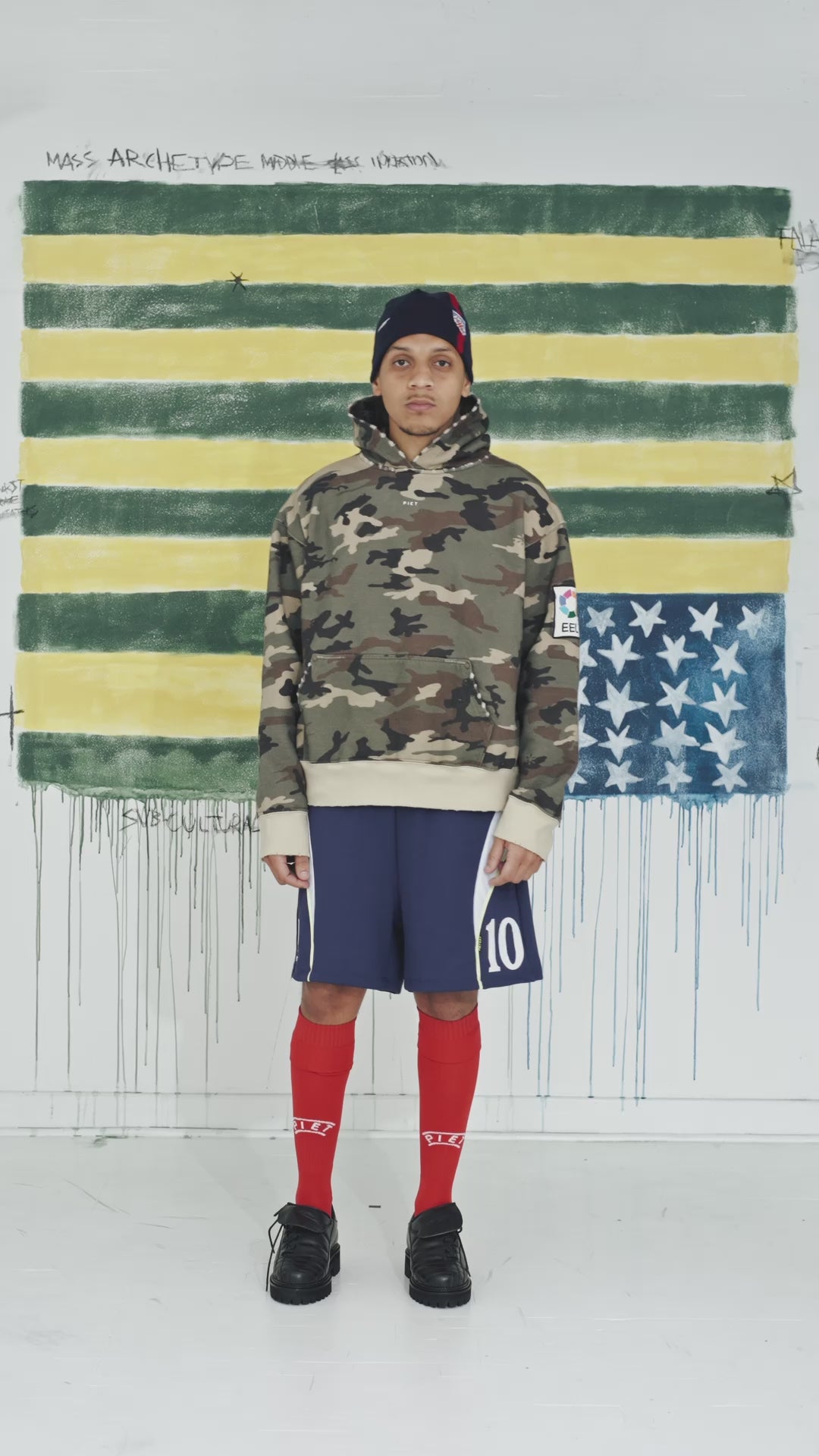 O Soccer Shorts é confeccionada em malha texturizada de alta gramatura, com recortes e inserção de vivos. O cós elástico com ajuste por cordão interno garante conforto, enquanto a sunga embutida oferece praticidade. A peça conta com estampas e etiqueta personalizada.