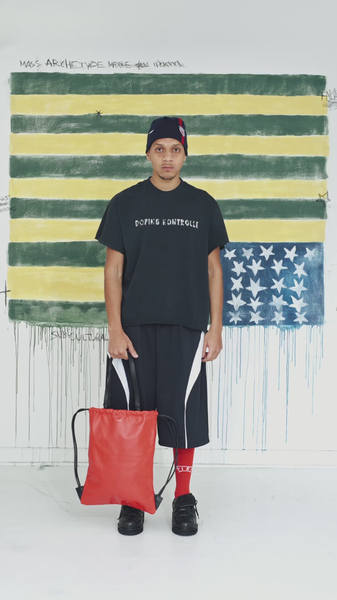 A Soccer Baggy Shorts é confeccionada em malha texturizada de alta gramatura, com recortes e inserção de vivos. O cós elástico com ajuste por cordão interno garante conforto, enquanto a sunga embutida oferece praticidade. A peça conta com uma pequena estampa e etiqueta personalizada na parte de trás.