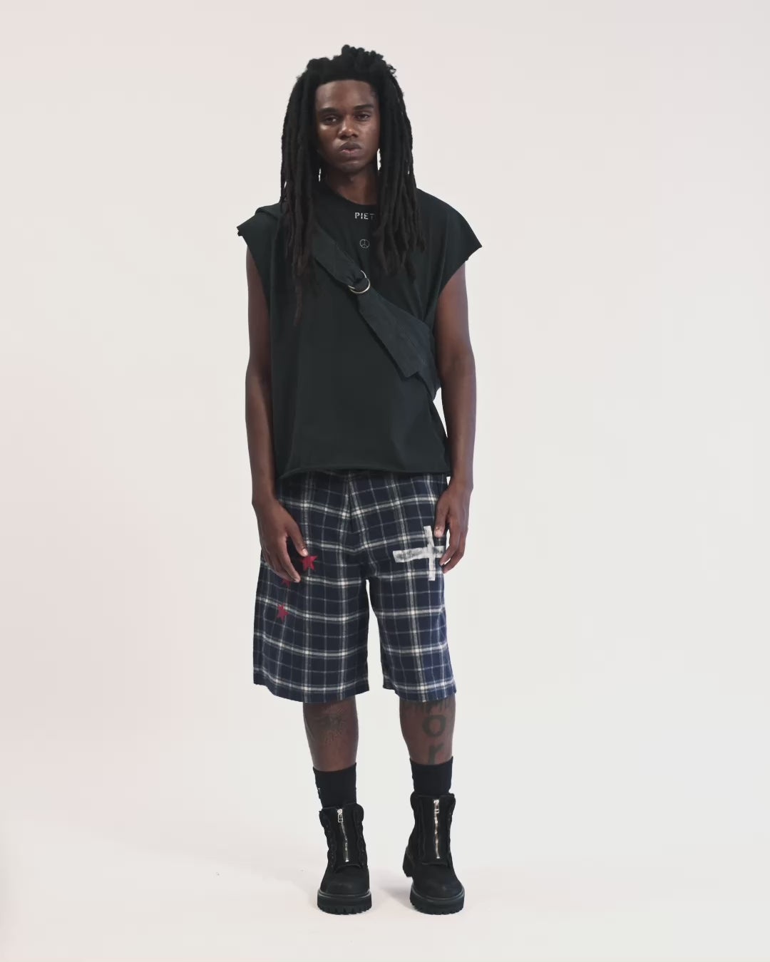 O Shorts PIET Xadrez é confeccionado em flanela 100% algodão. Com modelagem levemente ampla, a peça apresenta padronagem xadrez e cós estruturado. Possui estampa com aspecto desgastado e puídos leves, reforçando a estética vintage.